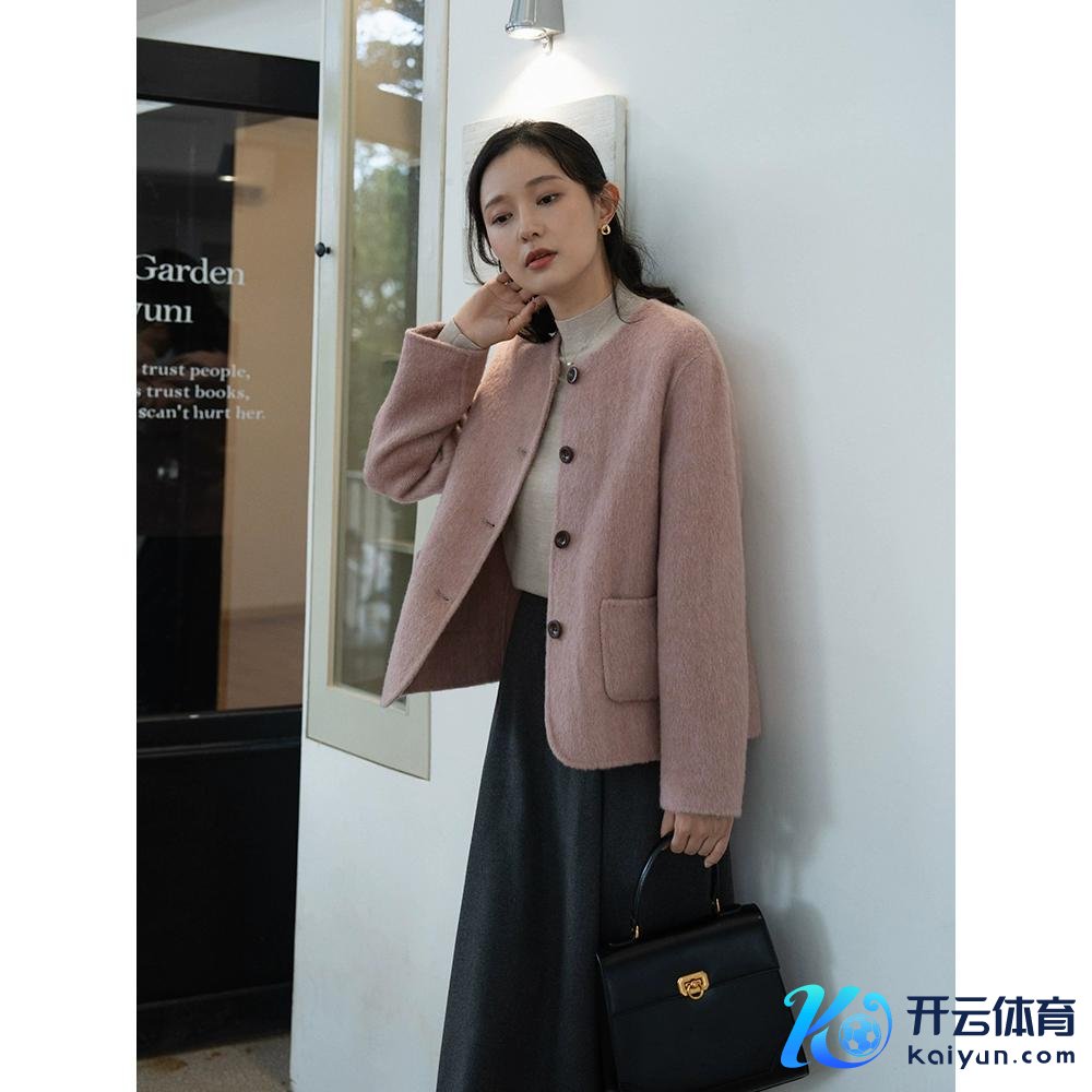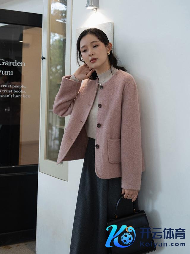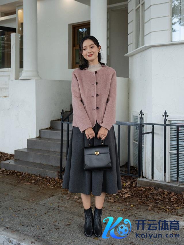 秋冬守旧羊毛双面呢,他即是短款的大衣外衣,关于个子不是很高的女生很友好,上身之后不会压身,一件粉色的短款大衣外衣内搭卖色的古道衫和一条灰色的半身裙,就能淘气穿出风雅感。