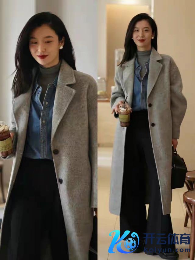 整套衣着的颜色最佳不要特出三个,像底下这一套穿衣示范用的是灰色的大衣外衣,内搭蓝色的牛仔衬衫和一件灰色的高领打底衫,酿成一个重迭的效力,更有端倪感,裤子是玄色的喇叭裤,整套衣着的颜料恰恰三个颜色,同期,颜料是属于纯色系列,看起来不会花哨。