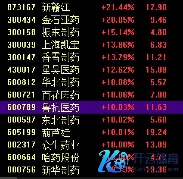 抗流感想法延续强势,鲁抗医药(600789)2连板,金石亚药(300434)20CM涨停,华北制药(600812)、百花医药(600721)、东北制药(000597)、哈药股份(600664)等多股涨停。
