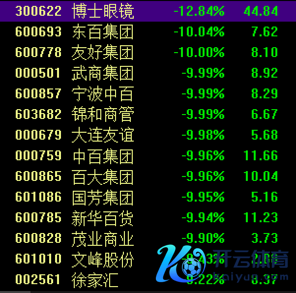 百货零卖板块重挫,大连友谊(000679)、中百集团(000759)、东百集团(600693)、友好集团(600778)、宁波中百(600857)等多股跌停。