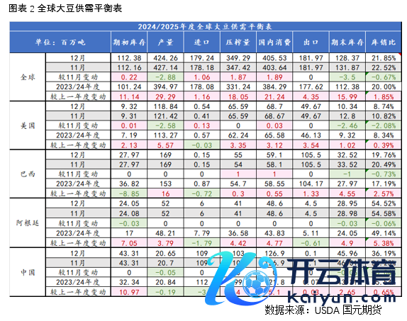群众大豆供需来看,2024/25年度群众大豆产量预估为4.2426亿吨,较12月预估的4.2714亿吨下调288万吨。主要原因是好意思国和俄罗斯大豆单产下滑,中国成绩面积减少。销耗端来看,群众大豆压榨量上调至3.493亿吨,较上月调高190万吨,出口量环比执平为1.82亿吨。国内销耗量环比上调189万吨至4.06亿吨。库存端受到好意思国和巴西的库存下调带动,群众大豆期末库存料到为1.284亿吨,较上月下调350万吨。