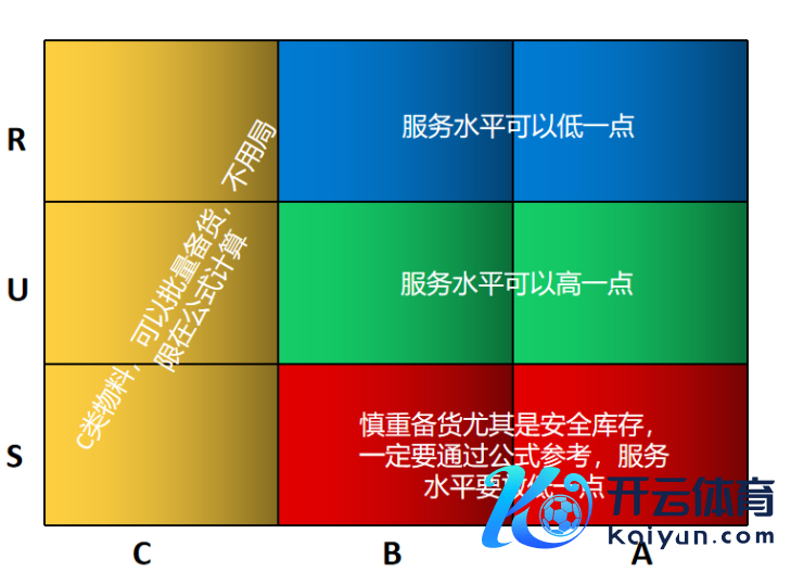 但是这个维度的谬误是太单一了。试想一下A类的物料约略需求量大约略单价高,这些物料如果一谈劳动水平齐很高的话,安全库存的放大统统也大,那自然的放大了安全库存持有量,这是对企业不利的。于是,这几年好多企业引入了另一个维度RUS维度。