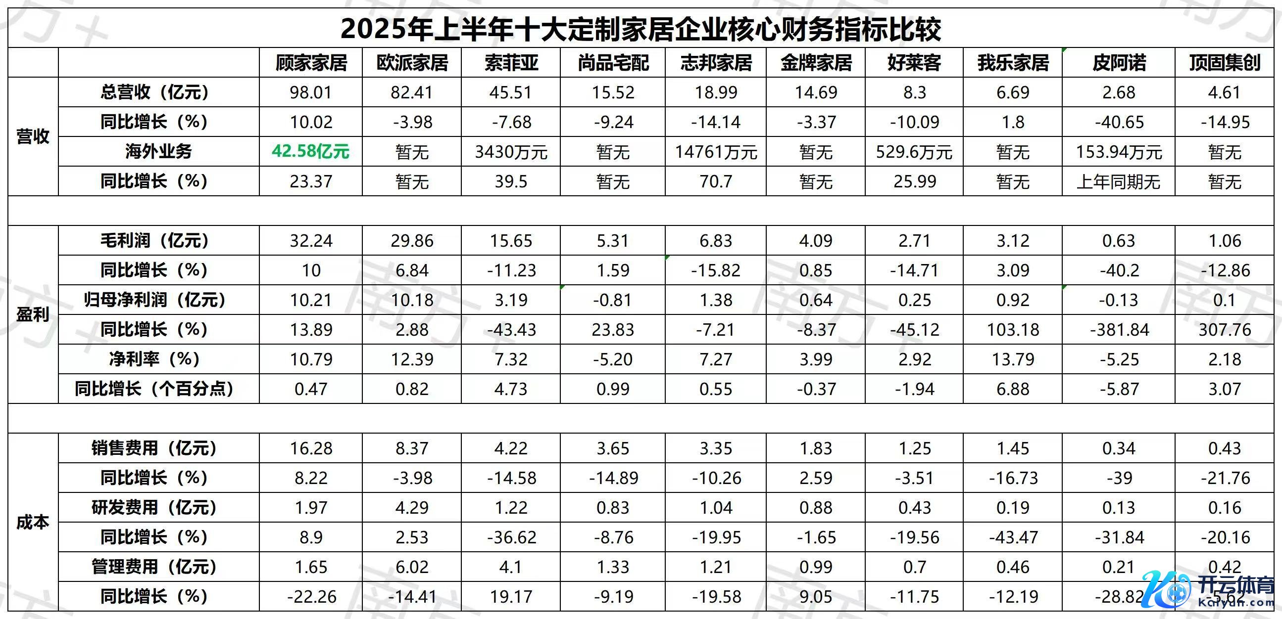 盈利才调方面,顾家家居一骑绝尘,2025年上半年归母净利润10.21亿元,同比增长13.89%,其中,顾家家居定制家居产品利润为1.829亿元,天然足足数值不高,但同比2024年家居产品利润1.725亿元增长超6%,在阛阓举座承压的布景下,如斯增速标明顾家家居正在加快霸占定制家居的阛阓份额,异日例必会对定制家居阛阓带来好多变化。
