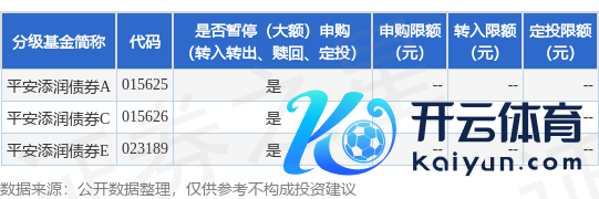 本站音信,9月27日吉祥基金措置有限公司发布《对于吉祥添润债券型证券投资基金暂停大额申购、依期定额投资及调度转入业务的公告》。公告中辅导,为了保证基金的沉稳运作,保护基金抓有东谈主的利益万博manbext网页版登录app官网,自2025年9月29日起吉祥添润债券型证券投资基金暂停大额申购、依期定额投资及调度转入业务,申购、调度转入、定投上限金额为1000.0万元,下属分级基金调治明细如下: